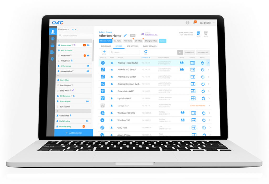 Araknis je váš vlastný sieťový ekosystém, ktorý spája všetky naše produkty tak, aby jednoducho a harmonicky spolupracovali. Výsledkom je rýchla a spoľahlivá sieť, ktorá sa ľahko inštaluje a aktualizuje. Vďaka tomu, že každé zariadenie je riadené prostredníctvom cloudu, možno ich monitorovať na jednom ľahko použiteľnom ovládacom paneli. Ak budete niekedy potrebovať aktualizovať alebo prekonfigurovať zariadenie, jednoducho zoberte svoje mobilné zariadenie.